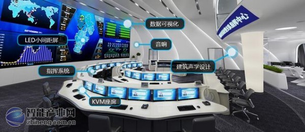 在基礎架構設計上,根據指揮中心的基礎職能,全面覆蓋了顯示區、操作席位區、指揮席位區、決策區、數據中心、控制室等功能區域,形成一個完整的大數據指揮中心架構。