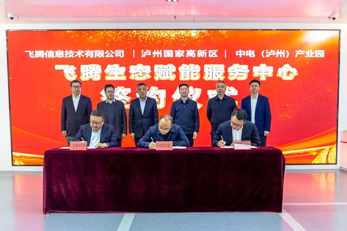 3月1日,飛騰公司與瀘州國家高新區(qū)、中電(瀘州)產(chǎn)業(yè)園在飛騰天津總部舉行“飛騰生態(tài)賦能服務(wù)中心”三方合作簽約儀式。該服務(wù)中心也是西南地區(qū)首家“飛騰生態(tài)賦能服務(wù)中心”。