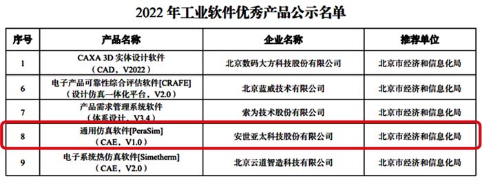近日,工業和信息化部對2022年工業軟件優秀產品名單進行公示,包含CAD、CAE、ERP、PLM、MES等69款工業軟件,涉及汽車、船舶、核電、鋼鐵、模具、礦山等應用領域。安世亞太憑借通用仿真軟件PERA SIM獲評2022年工業軟件優秀產品獎。
