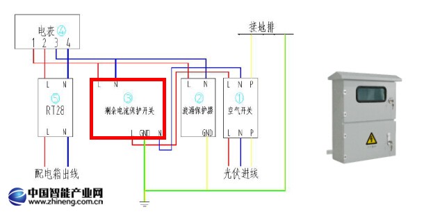 近年來,隨著光伏行業日益增長的需求。光伏并網箱主要用于分布式光伏電站項目的并網保護,一般接在家用光伏逆變器出線端,對整個線路進行過欠壓、過流、短路、漏電保護,同時內置計量電表對光伏并網電能進行計量。根據國家電網分布式光伏并網管理辦法,并網箱是戶用光伏電站的必須配置,主要起到線路電氣保護,電能計量以及過欠壓保護三大作用,線路示意圖如下: