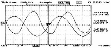 圖 1-3 電機(jī)相電壓波形(Ch1)和相電流取反后的波形(ch2)