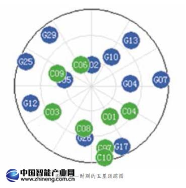 ●增多了可跟蹤衛星數,使衛星分布更為合理,降低了DOP值,提高了解算精度,特別是所能跟蹤GPS衛星少時顯得更為重要(如下圖所示,綠色為BDS衛星,藍色為GPS衛星);