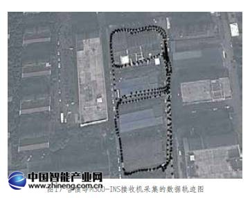 兩者在同一時間同一環境下采集的GPGGA經緯度坐標信息導入到谷歌地圖中所生成的圖片,圖中紅色點連線形成的軌跡定位軌跡為不帶慣導M300采集的數據形成的, 黑色點連線形成的軌跡定位軌跡為M300-INS采集的數據形成的,由下圖對比可以看出在同一時間同一遮擋測試環境下,M300-INS導航設備采集數據形成的軌跡平滑度遠好于M 3 0 0 接收機,M300-INS對遮擋環境具有較高的應對能力。
