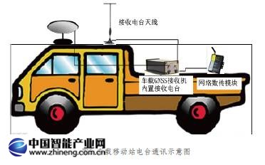 GNSS參考站自動實時播發差分改正數據給車載終端的GNSS接收機,車載終端中的GNSS接收機實接收差分數據并進行差分定位解算,并將解算結果(精確坐標和速度)再實時發送到機場監控指揮中心。