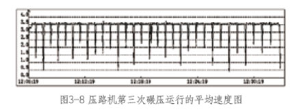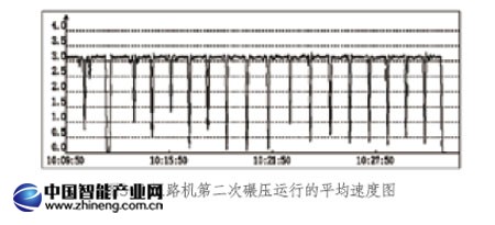 由于這種方式計算的速度突變比較厲害,與實際情況并不相符合,所以,在這里采用了一種平滑方式,如將前6秒的速度取平均作為其即時速度。可以時間作為橫坐標(biāo)軸,速度作為縱軸,繪制數(shù)據(jù)的碾壓速度圖。