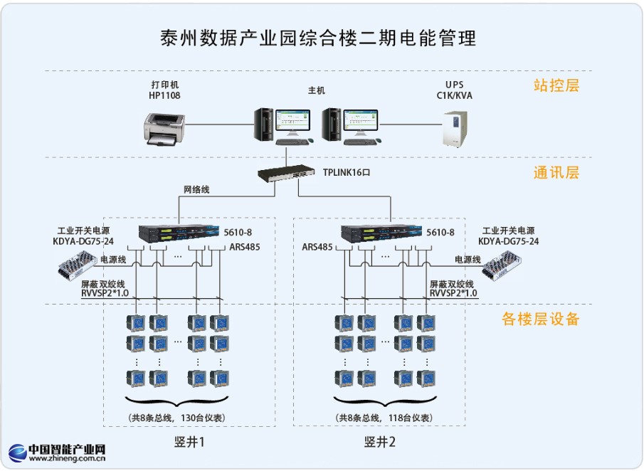 泰州數據產業園綜合樓二期現場為一棟23層辦公大樓,該項目針對現場照明、插座、動力、空調回路進行配電監測,考慮到蓋大樓為一棟外租型辦公樓,需進行收費管理,該項目在辦公室回路設置了DTSF-1352KC儀表,在公共區域及地下室設置PZ系列多功能儀表,通過Acrel-3000電能管理系統進行耗電統計,每月出具耗電清單,對每個辦公室進行收費,對于耗電情況可進行短信報警,從而給業主提供繳費指南。