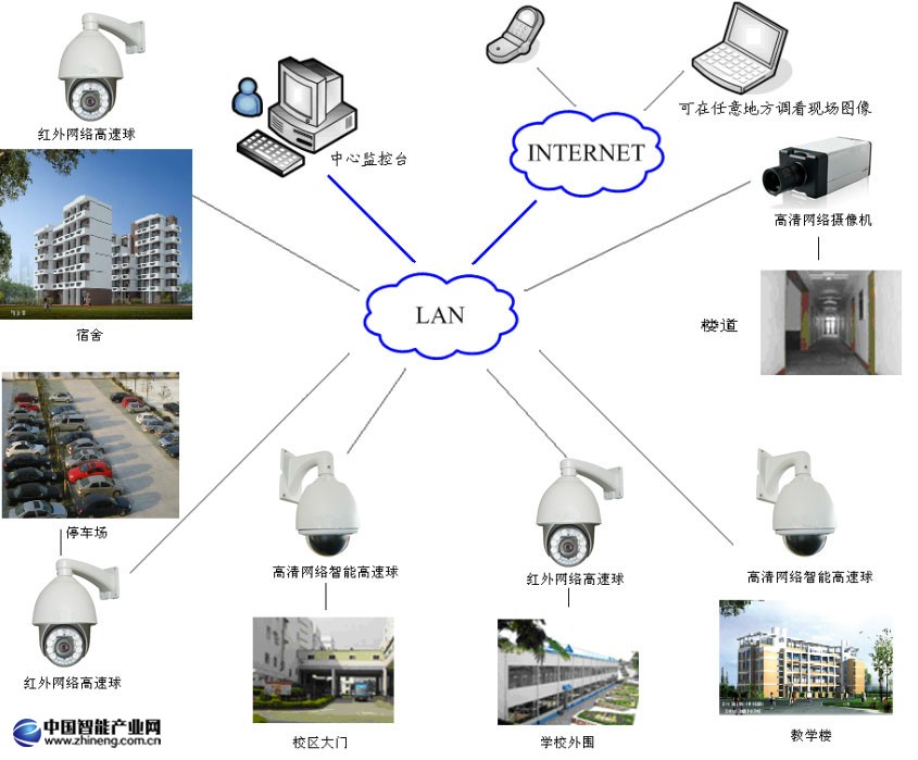 貴州武警某干部子弟學校位于貴州某市。為了加強校園安全管理,新建全高清綜合視頻監(jiān)控系統(tǒng),為保障師生員工的人身財產(chǎn)安全,完善學校安全防范體系、提高校園整體防控能力,創(chuàng)建一個文明、安全、和諧、美麗的校園環(huán)境等考慮,欲建設園區(qū)視頻監(jiān)控安全防范綜合管理系統(tǒng)。通過在園區(qū)主干道及圍墻周界教室、宿舍走廊等設立視頻監(jiān)控點,將監(jiān)控圖像實時傳輸?shù)奖O(jiān)控中心,通過對圖像的瀏覽、查詢等方式,使各相關職能部門直觀地了解和掌握監(jiān)控區(qū)域的治安動態(tài),有效提高校園治安管理水平。