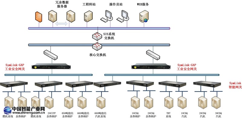 鋼廠余熱回收發電,不但可以減少大量煙塵、CO2、SO2等氣體排放,創造巨大的環保效益,同時能夠降低鋼廠運營中的能耗,創造可觀的節能效益和經濟效益。Symlink工業智能網關的應用,通過加載不同的驅動程序將各個子系統接入到SIS系統中,免去了繁瑣的數據幀創建過程,從而解決自動化系統中不同通信標準的異構系統之間的互聯互通問題。