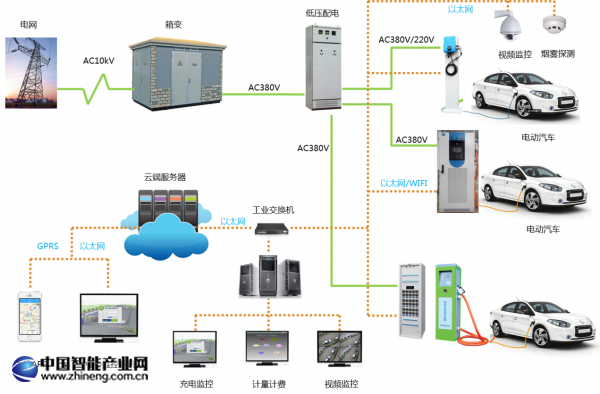 13.使用方式多樣,充電樁可自帶國標槍頭,也可配置國標槍座; 解決方案結構圖