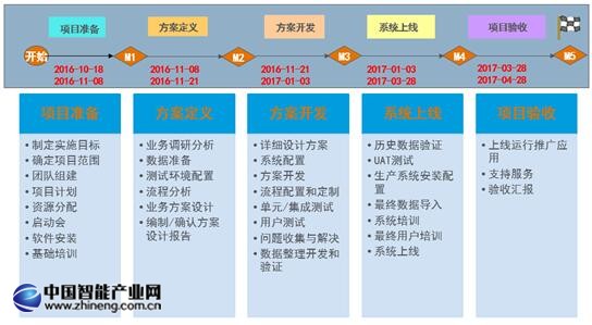 實施周期:2016年10月18日實施啟動,系統上線日期:2017年04月28日,整個項目計劃工期7個月。